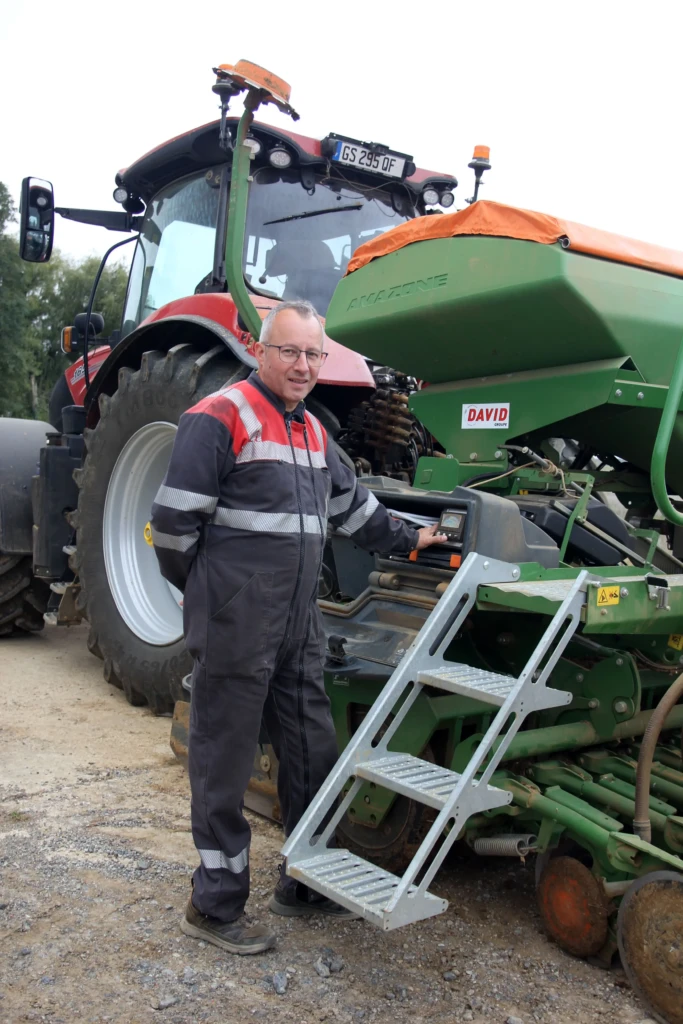 Une image de Vincent Bertrand devant sa passerelle du semoir sécurisée